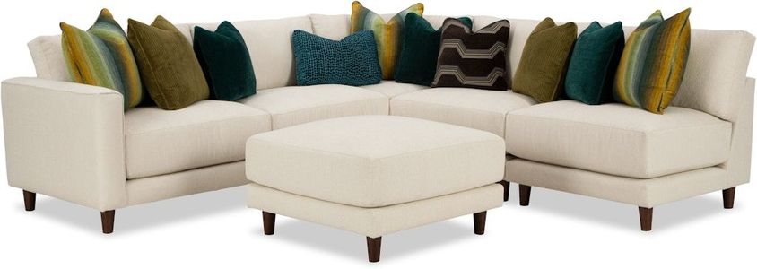 Sophisticated and modern, this group has 8 inch Blend Down seat cushions that are plush but supportive, while the LuxDown toss pillows are squishy soft, giving this piece a casual relaxed style. Loose box back pillows, waterfall track arms and conical shaped legs are some other key details that make this piece so special. 7 pieces available: Right Arm Chair 1/2, Left Arm Chair 1/2, Right Arm Chaise, Left Arm Chaise, Armless Chair 1/2, Corner, and Ottoman. 2 toss pillows are standard on each modular piece.