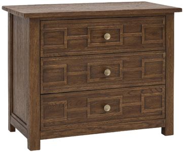 The worn saddle finish gives this bachelor's chest a rich, burnished look. It includes three self-closing drawers, a cedar-lined bottom drawer, and a geometric drawer design that adds depth and visual interest.Read More