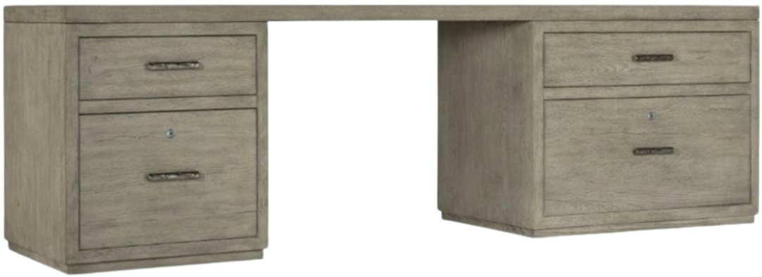 With a rustic weathered smoked gray mink finish and clean modern lines, the Linville Falls desk includes an expansive 96-inch top, a small file on one side and a lateral file on the other. Altogether, there are 4 drawers, including 2 top utility drawers, and the lower drawers are locking file drawers with pendaflex filing systems.Read More