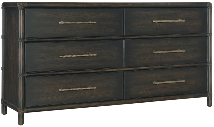 Inspired by tropical getaways, the Retreat Pole rattan dresser is a blend of natural materials in a laid-back, versatile design. Crafted of oak and maple veneers with rope accents, the dresser is finished in black sand, transparent by design to reveal the unique grain patterns in the wood veneer.Read More